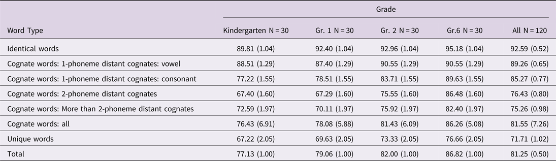 Table 1. Summary Statistics of Pronunciation Accuracy Judgments by Phonological Distance and Grade (N = 120)
