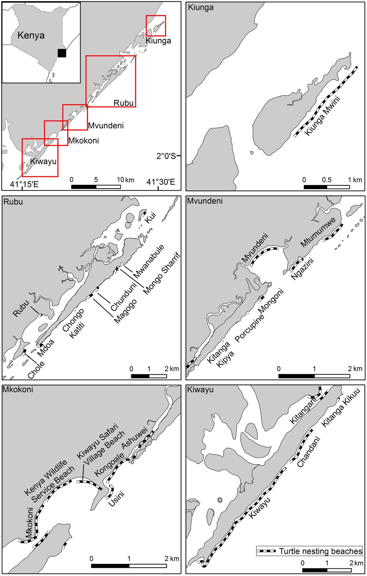 This work was supported by WWF-Netherlands, WWF-US, the Keane Family Foundation Trust and players of People's Postcode Lottery through WWF-UK. We appreciate the partnership of the Kenya Wildlife Service, Lamu County Government, and the Kenya Marine and Fisheries Research Institute. Specifically, we thank Julie Church, Sam Weru, Dishon Murage and Nassir Amiyo for the valuable role they played in coordinating the monitoring programme. We also thank the local communities, volunteers and interns who participated in the beach patrols. Handling of turtles, nest contents, and hatchlings was carried out with the permission of the Kenya Wildlife Service. We thank two anonymous reviewers and the editor for their valuable critiques.