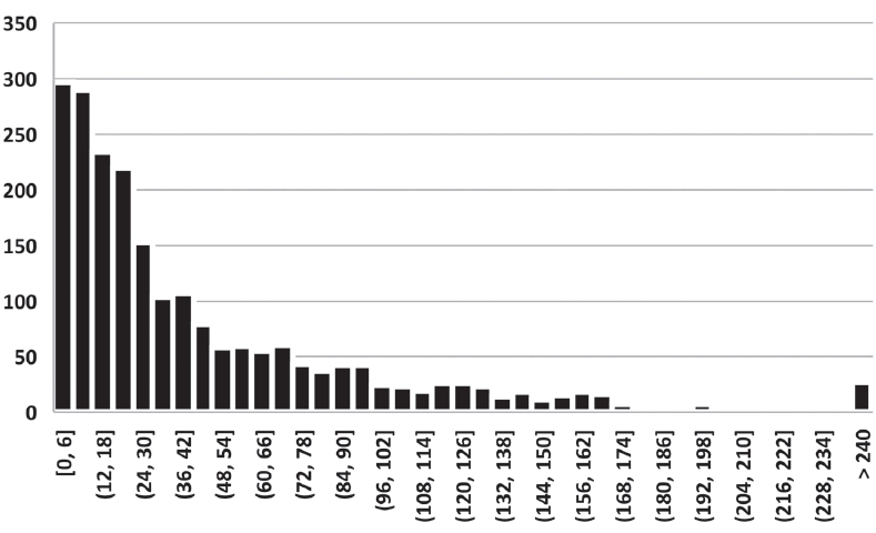 FIGURE 3 DISTRIBUTION OF LOAN MATURITIES IN MONTHS: 1640–1683